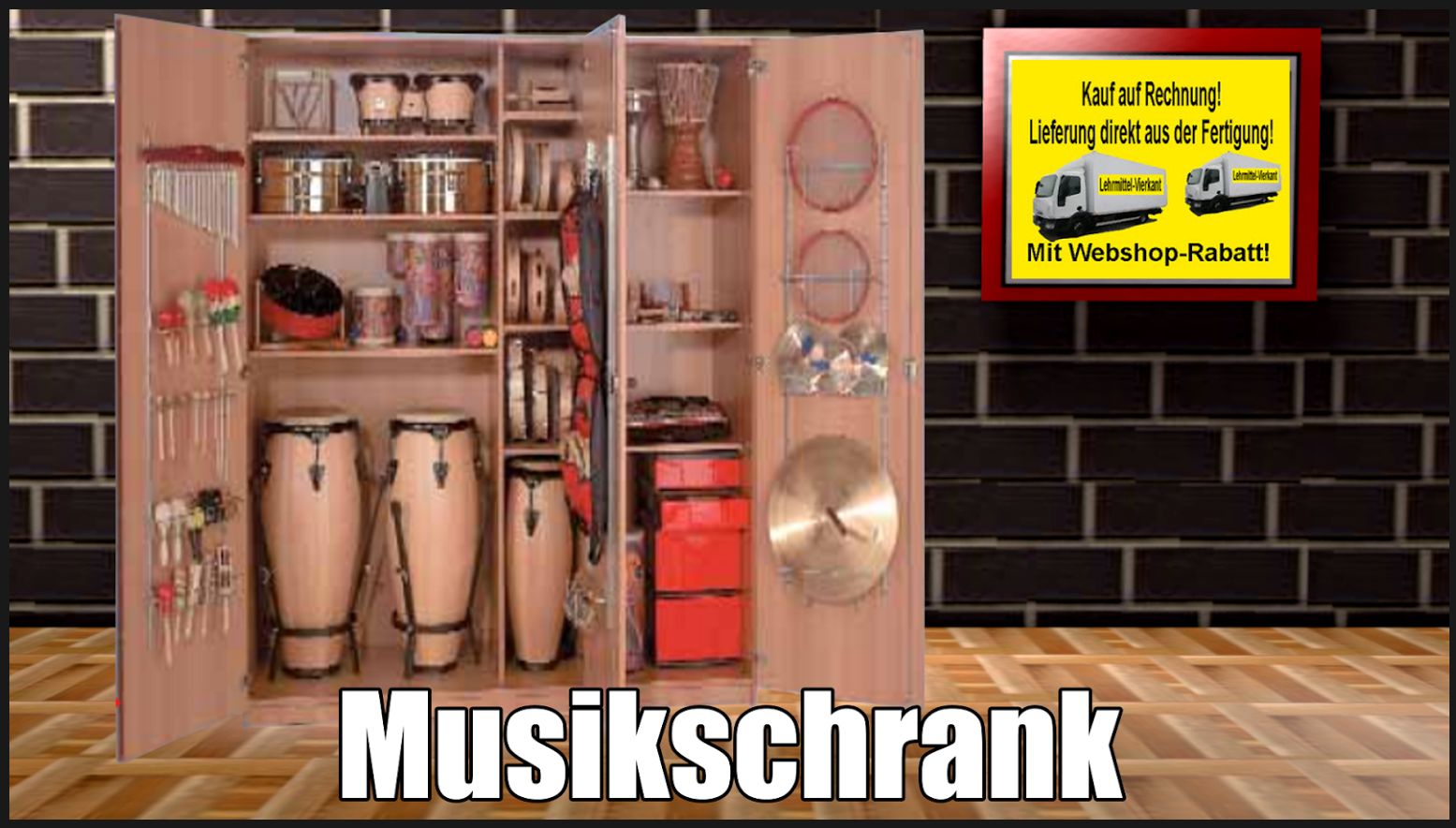 Zwischenböden. Sie bringen darin sehr viele große und kleine Instrumente unter. Auch lange Bass-Xylophone passen in diesen Schrank.An den Innenseiten der Türen